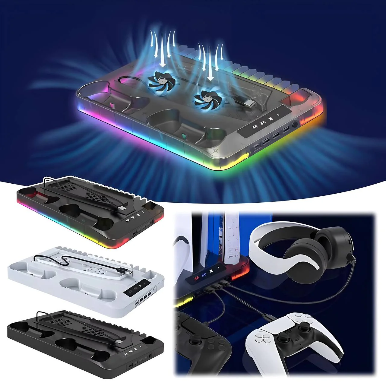 Package Includes: 1* Multifunctional Cooling Stand Set for PS5